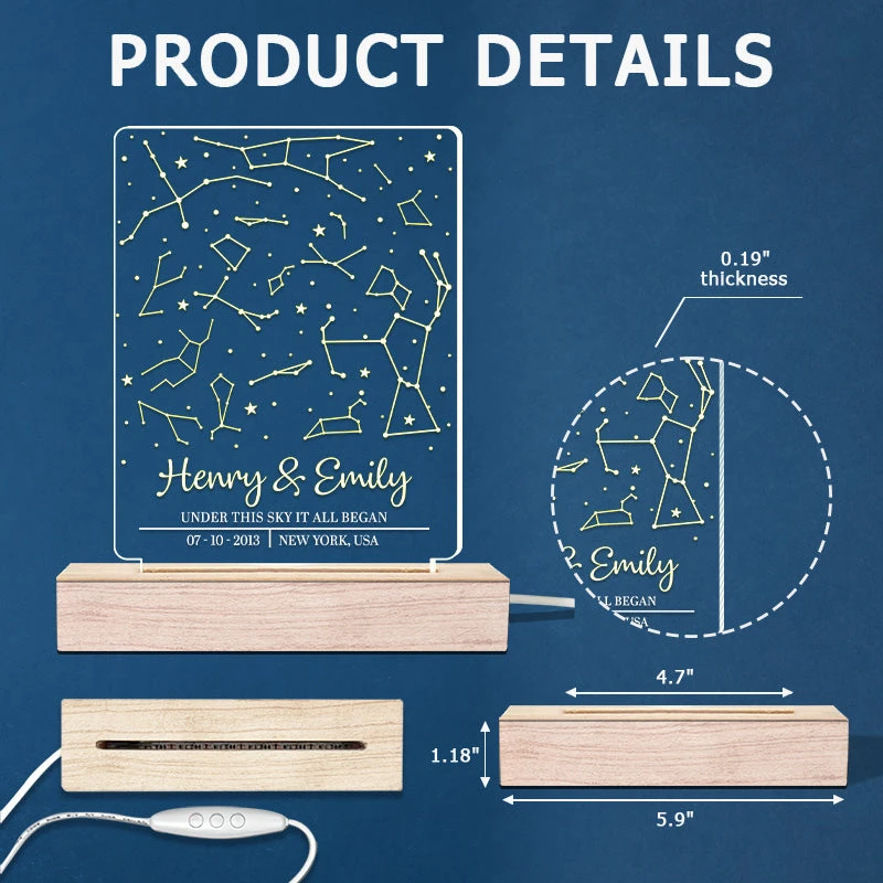 - 1 acrylic plaque + 1 wood base + 1 USB Type A.