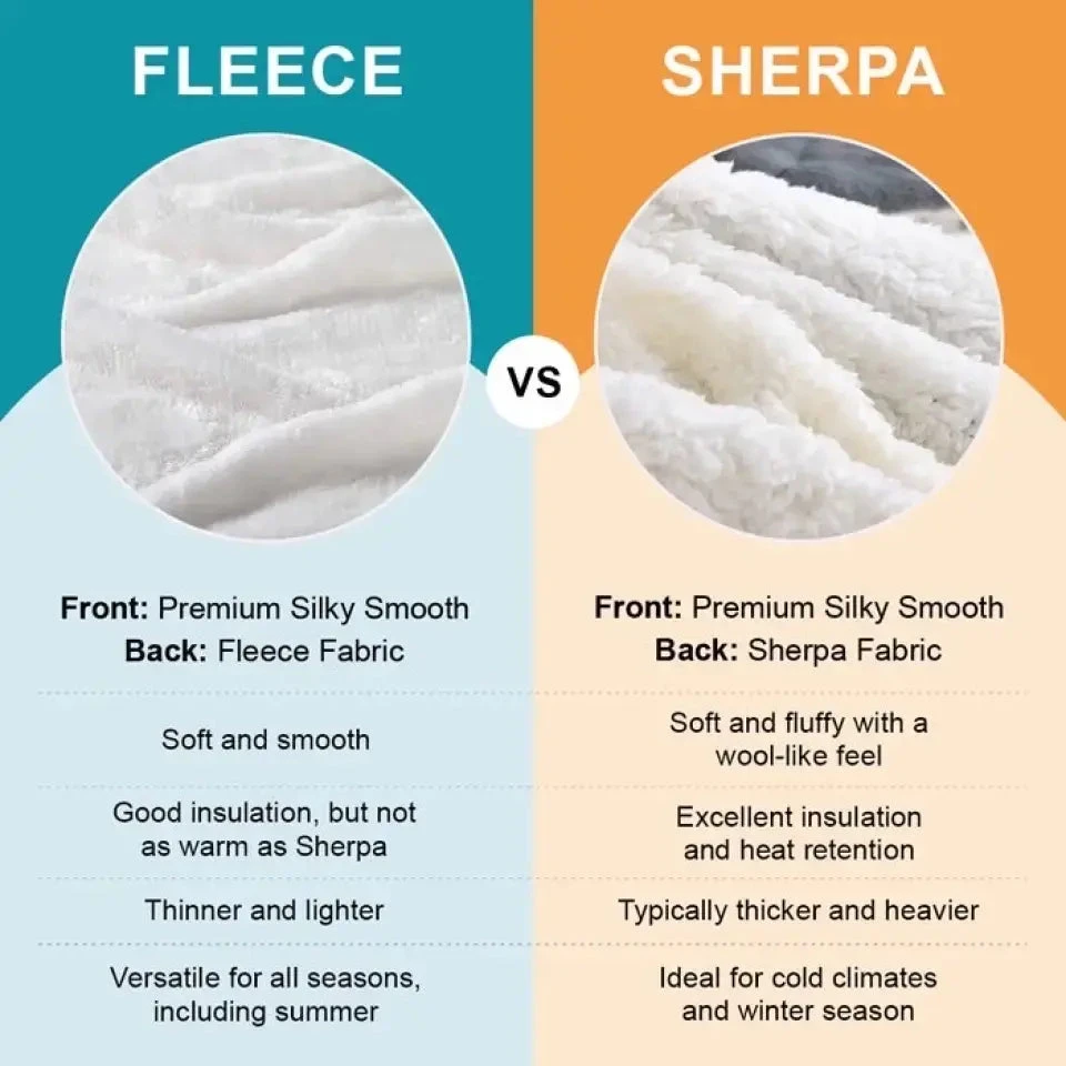 There are 2 material options – Fleece and Sherpa. Choose the material that fits your purpose.