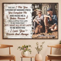 You Complete Me And Make Me A Better Person – Upload Image, Gift For Couples – Personalized Horizontal Poster
