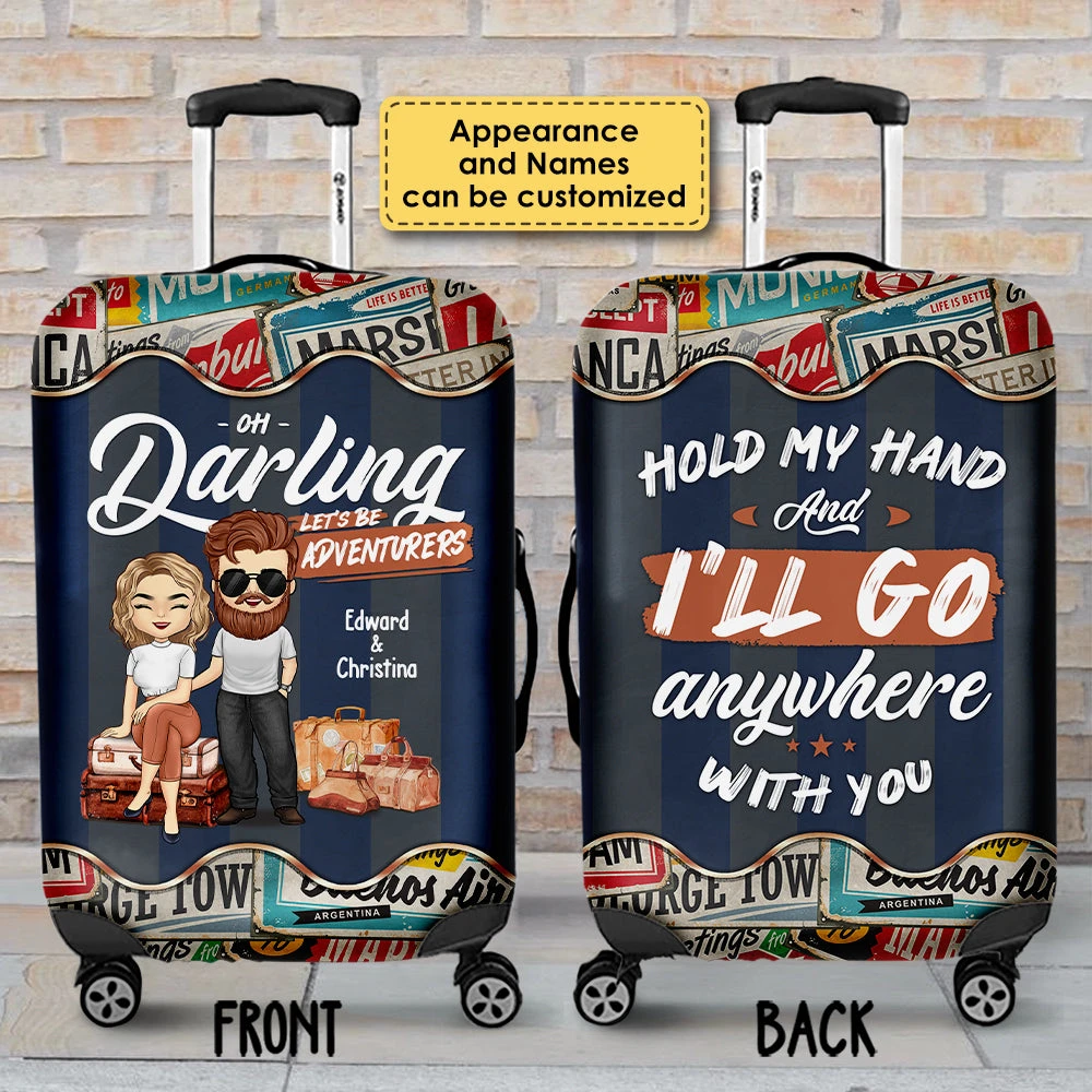 We'll Go Anywhere - Personalized Luggage Cover - Gift For Couples, Husband Wife